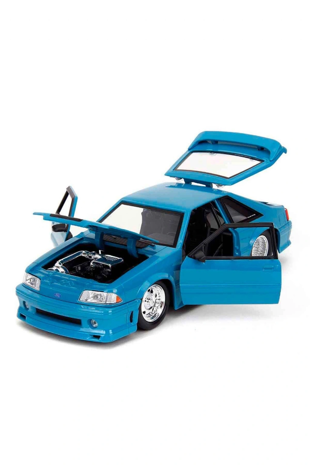 Fast & Furious hayranlarının beklediği o araba burada! Hız bitmiyor, öfke dinmiyor! Fast & Furious film serisinden bilinen ve hayranların yakından tanıdığı 1989 Ford Mustang GT, tüm dikkatleri üzerine çekmeye çoktan hazırdır.; Göz alıcı mavi rengi ile bilinen görünümünden ilham alınarak tasarlanan araba, koleksiyonların bir parçası olmak için geliyor! Açılıp kapanabilir kapıları, kaputu ve garaj bölmesi ile görünümünü daha gerçekçi kılmaktadır.; Die cast yapısı sayesinde her zamankinden daha güçlü olan 1:24 Fast & Furious 1989 Ford Mustang GT Die Cast Model Araba, filmin hayranları ve otomobil tutkunları için eşsiz bir parçadır.; Hayranlar, arabayı dilediği yerde sergileyerek film serisine ve otomobil tutkusuna olan hayranlığını her yerde gösterebilirler.; Model araba, gerçek bir arabanın küçültülmüş versiyonudur.; 20. yüzyılın başlarından beri uygulanan ve die-cast adı verilen dayanıklı model araçlar günümüze kadar gelmiştir.; Zaman içerisinde die-cast model araba, tüm dünyada olduğu gibi ülkemizde de bir hobi haline gelmiş ve model araba koleksiyonculuğu hızla yaygınlaşmıştır.; Çocukların yeni hikâyeler oluşturarak hayal güçlerinin ve yaratıcılıklarının gelişmesini desteklerken onların oyun kurma ve taklit becerilerine katkı sağlar.; Arkadaşlarıyla oynayacakları oyunlar sosyalleşmelerine yardımcı olur.; Koleksiyon merakını destekler.; Kutu ölçüsü: 25 x 11,8 x 11,8 Ağırlık: 0,580 kg