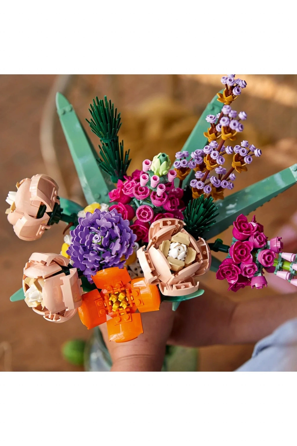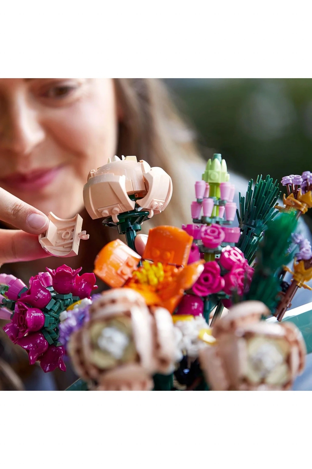 LEGO® Botanicals Çiçek Buketi 10280 - Yetişkinler İçin Koleksiyonluk Dekoratif Çiçek Model Yapım Seti (756 Parça);LEGO® Botanicals Çiçek Buketi (10280) ile evinize doğadan ilham alan zarif bir dokunuş katın. Bu LEGO® yapay çiçek model yapım seti, gül, aslanağzı, papatya, aster çiçeği ve daha birçok çiçek türünü içeren 15 saplı, gerçekçi görünümlü bir çiçek buketi oluşturmanızı sağlar.;Gerçek çiçeklerin estetiğini LEGO® parçalarıyla birleştiren bu LEGO® çiçek model yapım seti, tamamen bitki bazlı plastikten üretilmiş sürdürülebilir bir tasarıma sahiptir. Ayarlanabilir sap uzunlukları ve hareket ettirilebilir yaprakları sayesinde buketinizi dilediğiniz şekilde şekillendirebilirsiniz.;Solmayan bu yapay çiçek buketi, Sevgililer Günü, Anneler Günü, doğum günü ya da özel bir yıldönümü için mükemmel bir hediye fikridir. Aynı zamanda dekoratif bir obje olarak da her ortama zarafet katar.;LEGO® Botanicals koleksiyonunun en özel parçalarından biri olan bu set, doğayı seven yetişkinler için hem rahatlatıcı hem de yaratıcı bir hobi deneyimi sunar. Gerçekçi detaylar, canlı renkler ve modüler yapı ile kendi çiçek aranjmanınızı oluşturmanın keyfini çıkarın.;756 parçadan oluşan bu LEGO® çiçek model yapım seti, gerçek bir çiçek buketi kadar etkileyici, ama asla solmayan kalıcı bir güzelliğe sahiptir.