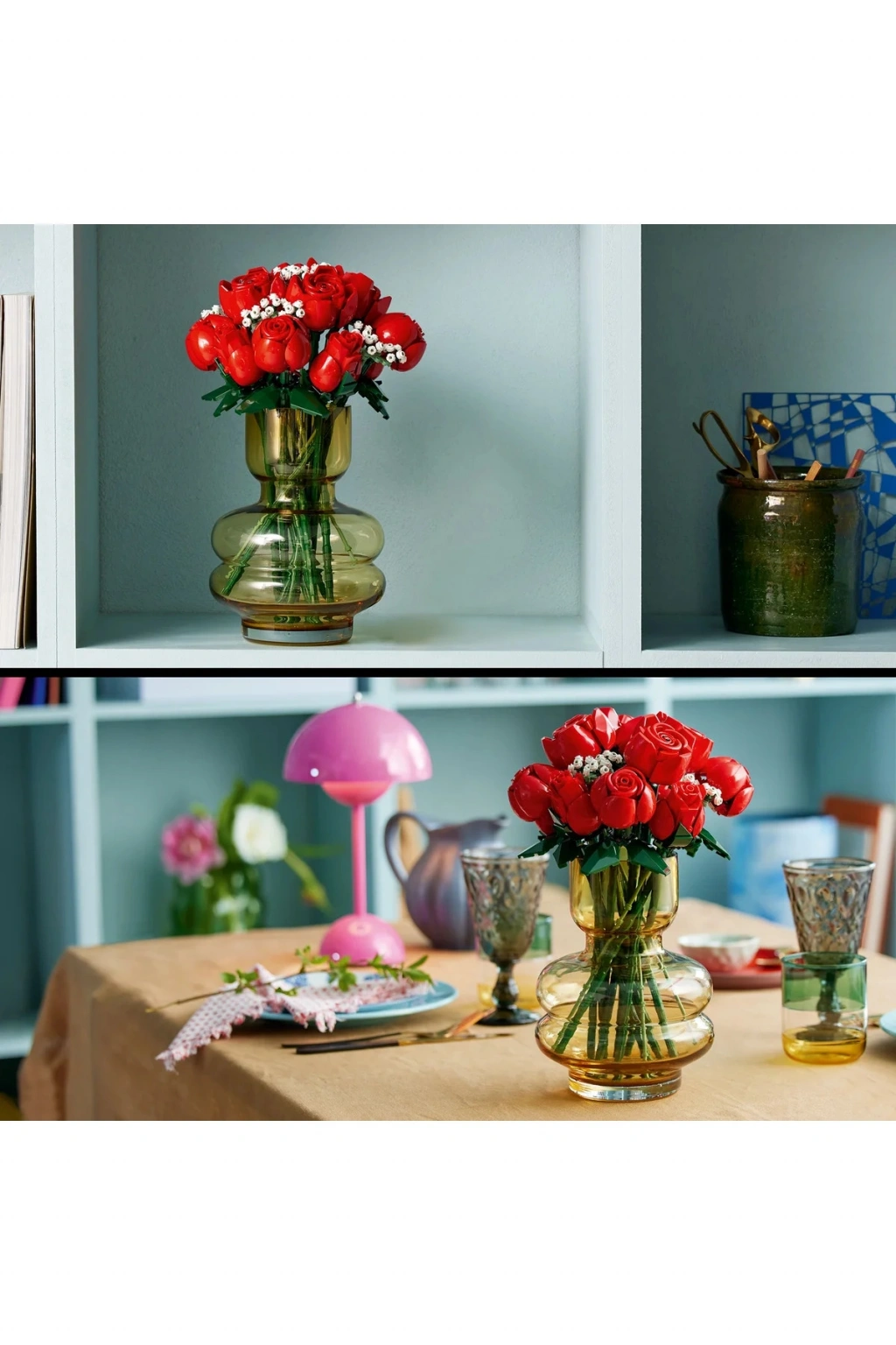 Yetişkinler için LEGO® Botanicals Gül Buketi (10328) ev dekorasyonu yapım setiyle kendinize zaman ayırın. Dinlendirici bir yapım projesine kendinizi kaptırın ya da Sevgililer Günü veya başka bir özel gün için mükemmel bir hediye olan bu klasik inşa edilebilen buketi sevdiğiniz birine hediye edin. Yapımı çok keyifli olan bu LEGO buketi, vazoda sergilemek için uzun saplı 4 adet tam açmış, 4 adet yeni açan ve 4 adet tomurcuk şeklinde bir düzine kırmızı gül ile 4 dal küçük beyaz çiçekli bahar yıldızı çiçeğinden oluşur. Kolayca birleştirilen buket, her mekan için zarif bir sergileme modelidir ve LEGO Botanik Koleksiyonu’ndan diğer setlerle birleştirilebilir. 6 yapım parçası paketi ve 3 çiçek açma aşaması için ayrı yapım talimatları içeren set, tek başına ya da grup halinde yapmak için mükemmeldir. Yapım talimatlarının dijital bir versiyonu LEGO Builder uygulamasında bulunur. Özellikle yetişkinler için tasarlanan, ilham verici LEGO yaratıcı yapım projeleriyle bir rahatlama alanını keşfedin.