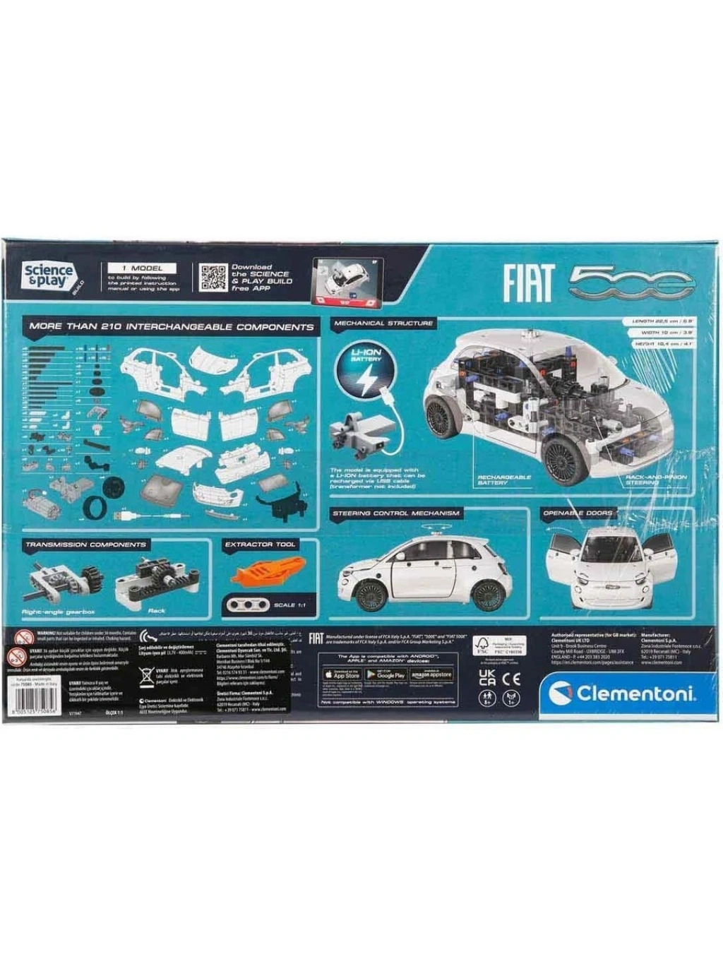 Ve işte karşınızda Fiat 500e! 210’dan fazla değiştirilebilir parçasıyla ona söyleyecek söz yok. Dikkatle ve sabırla bu parçaları doğru bir şekilde birleştirebilen herkes günün sonunda bir 500e’ye sahip olabilir. Ona oyuncak demek haksızlık; o bir tasarım harikası. Her bir parçası son derece detay ve teknik tasarıma sahip olduğu için gerçek halinden bir farkı yok. Elektrikli 500e’den ilhamla tasarlanan bu araba, USB kablo aracılığıyla şarj edilebilen batarya ile çalışmaktadır.