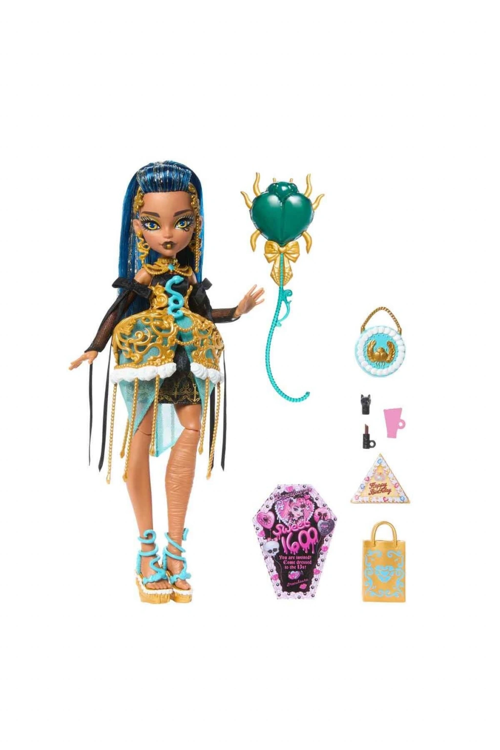 Monster High bebekleri, yüzyılın en ürpertastik kutlamasına davetli! Draculaura, havalı bir Doğum Günü partisi düzenliyor.; Bebeğin 1600. yaş gününü, bu özel güne yakışır muhteşem bir partiyle kutlamalarına yardım et! Doğum günü bebeklerinin her biri muhteşem görünür, balon, davetiye, doğum günü kartı ve hediye gibi temaya uygun parçalar ile birlikte gelir.; Çeşitli havalı aksesuarlar sayesinde bu partide eğlencenin sınırı yok! Draculaura 1600. yaşına basıyor.; Monster High öğrencileri de sıkı dostlarının bu özel gününü kutluyor.; Bebekler, muhteşem kıyafetleri ve aksesuarları ile dans pistinde göz kamaştırmaya hazır.; İçinde sürpriz hediyeler olan Draculaura'nın hediye paketleri gibi parti temalı aksesuarlar, Doğum Günü için muhteşem hikayelere ilham veriyor.; Çocuklar ve koleksiyoncular, makyaj malzemesi ve çanta gibi aksesuarlar ile bebeklerin doğum günü partisine hazırlanmasına yardımcı olurken çok eğlenecekler! Parti ne kadar kalabalık olursa o kadar güzel geçer.; Tüm sıkı dostlar ekibiyle ürpertastik bir kutlama gerçekleştirmek için Doğum Günü koleksiyonunun tamamına göz atabilirsiniz! Çocukların yeni hikayeler oluşturarak hayal güçlerinin ve yaratıcılıklarının gelişmesini desteklerken onların oyun kurma ve taklit becerilerine katkı sağlar.; Arkadaşlarıyla oynayacakları oyunlar sosyalleşmelerine yardımcı olur.; Koleksiyon merakını destekler.; Ürünün; Frankie Stein, Draculaura, Cupid Asteria ve Cleo Denile olmak üzere 4 farklı modeli bulunmaktadır.; Paket içerisinde; bebek, balon, çanta, davetiye ve çeşitli aksesuarlar bulunmaktadır.; Paket ölçüsü: 24 x 6,5 x 32,5 cm