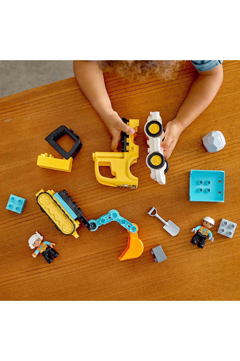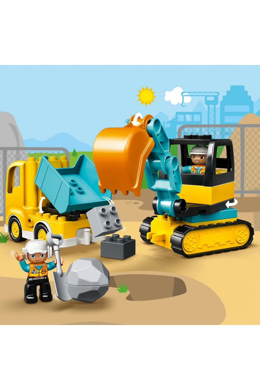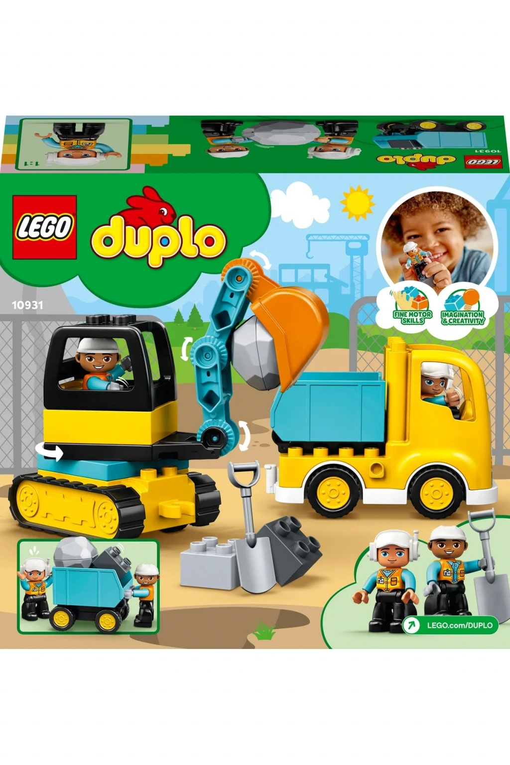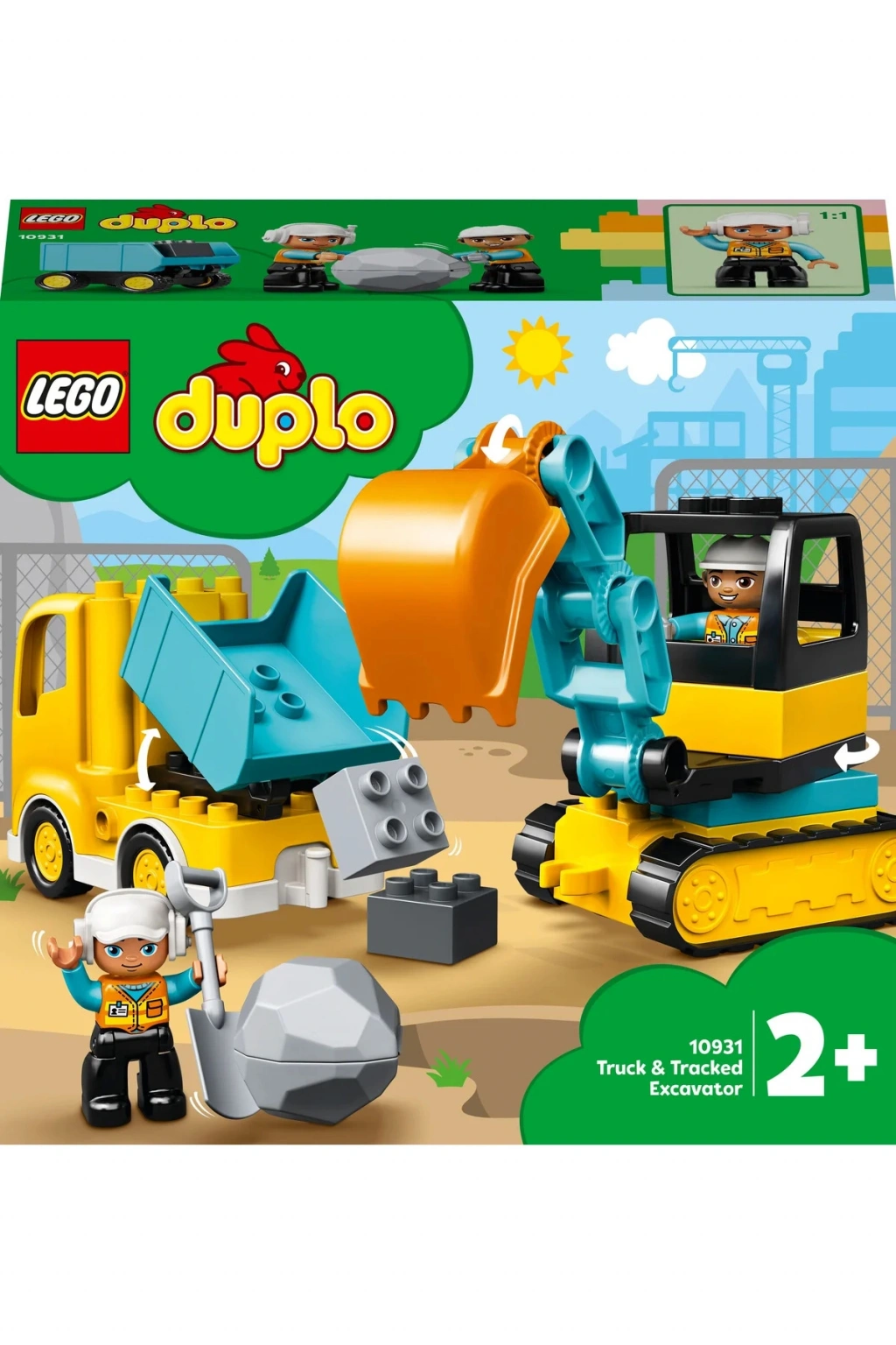 LEGO ® DUPLO® Town Kamyon ve Paletli Kazıcı 10931 - 2 Yaş ve Üzeri Çocuklar için Eğitici Oyuncak Yapım Seti (20 Parça);LEGO® DUPLO® Kamyon ve Paletli Kazıcı (10931) eğitici oyuncak yapım seti, küçük çocuklara açık uçlu oyunlarla öğrenmenin keyfini yaşatır. Bu renkli çocuk oyuncağı, miniklerin el becerilerini geliştirirken aynı zamanda problem çözme, yaratıcılık ve koordinasyon becerilerini destekler.;Set; 2 inşaat işçisi figürü, bir damperli kamyon, dönen kepçeli kazıcı, taş parçaları ve inşaat aksesuarları içerir. LEGO® DUPLO® eğitici oyuncaklar, okul öncesi dönemdeki kız ve erkek çocuklara fiziksel ve bilişsel beceriler kazandırmak için mükemmeldir.;Minikler, araçları çalıştırarak ve sahayı yöneterek hayal gücüne dayalı eğitici oyunlar oluşturabilir. Kepçeyi doldurup kamyona boşaltmak, hem eğlenceli hem öğretici bir deneyim sunar.;Bu çocuk oyuncak seti, ailelerin birlikte oynayarak çocuklarıyla etkileşim kurmasına ve oyun yoluyla öğrenmeyi desteklemesine olanak tanır. Hem kız çocuk oyuncakları hem erkek çocuk oyuncakları kategorisine uygundur ve güvenli, dayanıklı tasarımıyla uzun ömürlü bir eğlence sağlar.;Küçük yaş grubu için ideal bir eğitici oyuncak yapım seti olan LEGO® DUPLO® Kamyon ve Paletli Kazıcı, çocukların oyunla öğrenmelerini sağlayan mükemmel bir hediye fikridir.