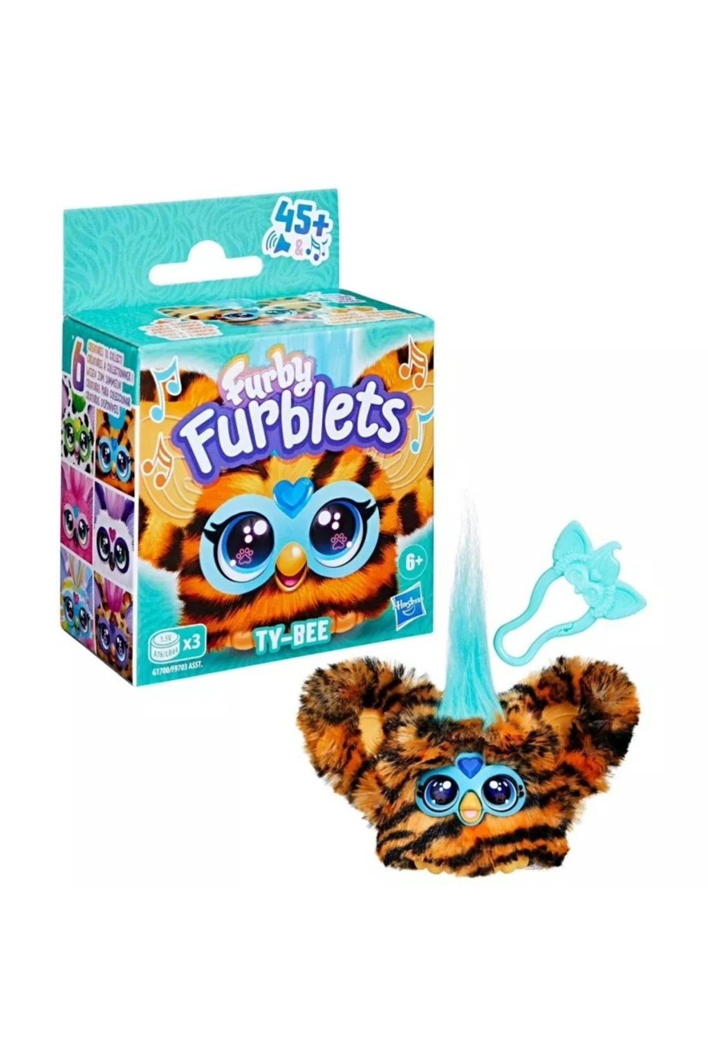 Furby Furblets Ty-Bee, eğlenceli kaplan desenli tasarımı ve turkuaz saç detayıyla Furby koleksiyonuna enerjik bir karakter ekler. 45’ten fazla ses ve müzik özelliği ile interaktif oyun deneyimi sunar.