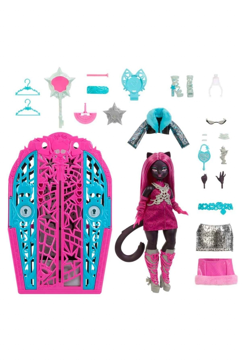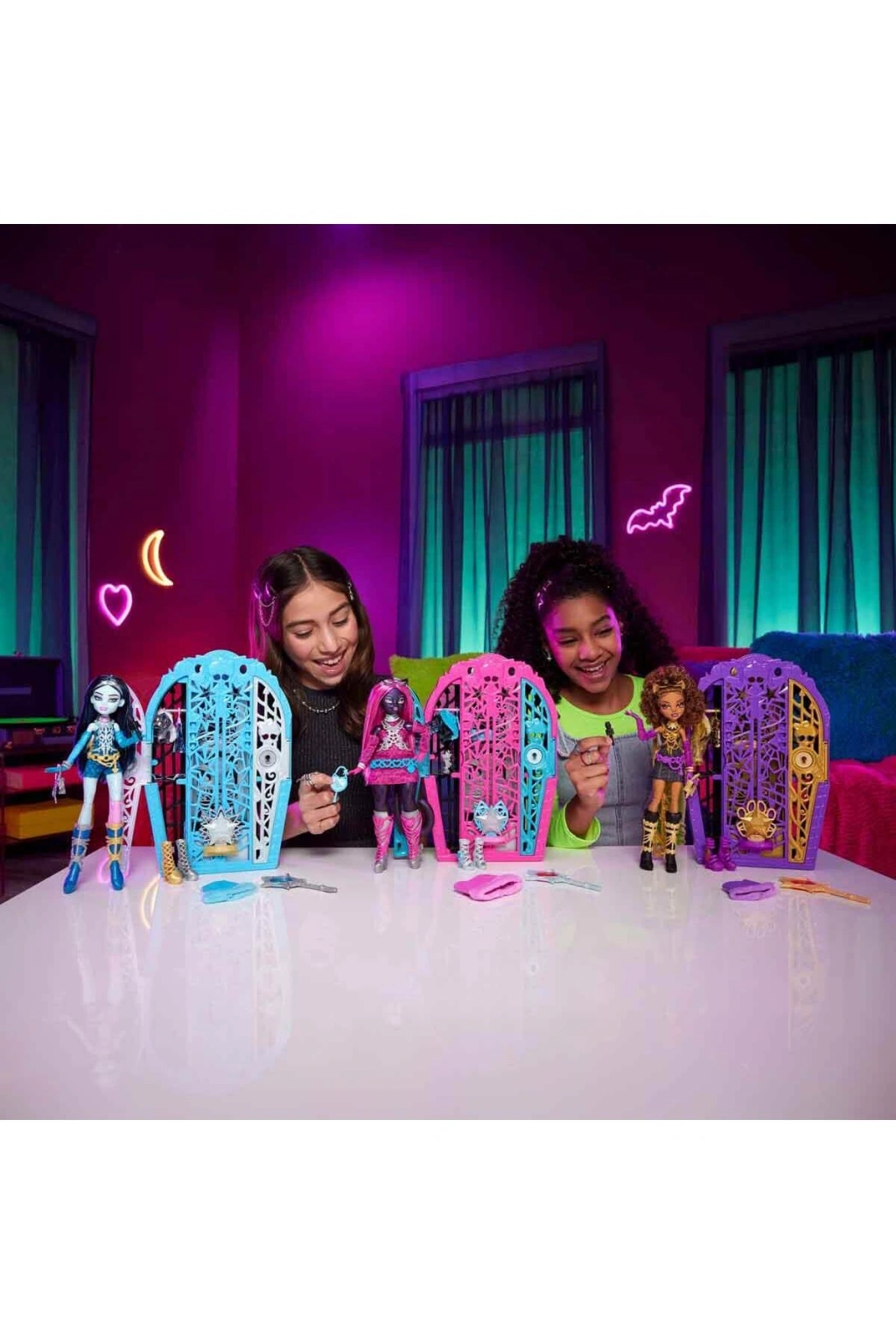 Monster High bebekleri nereye saklandı? Gizemi çözün, Hauntlywood'un kapılarını açın ve Gizemli Arkadaşlar: Monster High bebeği ortaya çıkarın! Çocuklar, büyüteç şeklindeki 'sihirli' anahtar ile haritada ipuçları arayarak dedektif rolüne bürünecekler.; Işıltılı kıyafetler, muhteşem uzun eldivenler ve parıltılı mücevherler gibi 19'dan fazla sürpriz keşfedilmeyi bekliyor! Hauntlywood kapıları ardındaki sırları Gizemli Arkadaşlar: giysi dolabı seti ile açığa çıkarın.; Kızlar Clawifornia'daki Hauntlywood'a gittiler.; Ancak kimse onların yerini bulamıyor! Kızların yerini ve 19'dan fazla sürprizi keşfetmek için adımları izleyerek ipuçları arayın! İlk adım ne mi? Büyüteç şeklindeki anahtarı kullanarak hazine haritasındaki sembolleri ortaya çıkarın.; Çocuklar kapıları açtığında, haritadaki sembollerle eşleşen tılsımları keşfeder.; Tılsımlar, kırmızı halıya yakışacak kadar şık sürprizlerin arasında saklıdır.; Üç tılsımı birleştirerek gizemli kolyeyi oluşturun.; Kolyeyi giysi dolabının alt kısmına yerleştirin, ardından fermuar gibi yukarı çekerek ihtişamlı Monster High bebeği ortaya çıkarın.; Sürpriz heyecanını tekrar yaşamak için tılsımı yeniden çekebilirsiniz.; Bebeği bulduğunuza göre hazırlanma vakti geldi.; 125'ten fazla kombin seçeneğiyle bebeği istediğiniz gibi hazırlayabilirsiniz.; Hauntlywood'un gölgelerinde muhteşem sırlar saklı! Gizemli Arkadaşlar: Esrarengiz Hauntlywood koleksiyonunun tamamına göz atarak diğer sürprizleri ve Monster High bebekleri keşfedin.; 4 yaş ve üzeri çocuklar, oyun saati sona erdiğinde bebeği, giysilerini ve aksesuarlarını hem hikaye anlatımı hem de depolama için kullanabilecekleri yıldızlarla süslü giysi dolabında saklayabilir.; Çocukların yeni hikâyeler oluşturarak hayal güçlerinin ve yaratıcılıklarının gelişmesini desteklerken onların oyun kurma ve taklit becerilerine katkı sağlar.; Arkadaşlarıyla oynayacakları oyunlar sosyalleşmelerine yardımcı olur.; Koleksiyon merakını desteklemeye yardımcıdır.; Ürünün; Clawdeen Wolf, Frankie Stein ve Catty Noir olmak üzere 3 farklı modeli bulunmaktadır.; Kutu içerisinde; Monster High bebeği, iki kapılı giysi dolabı, anahtar, 2 adet harita, 3 adet tılsım, 2 adet askı ve çeşitli kıyafet ve aksesuarlar yer almaktadır.; Kutu ölçüsü: 21,5 x 6,5 x 32 cm