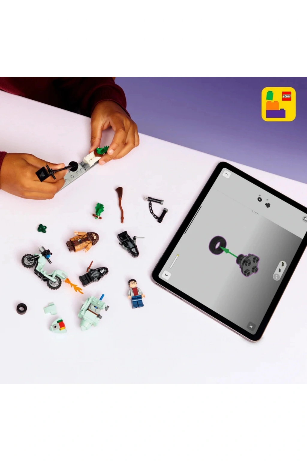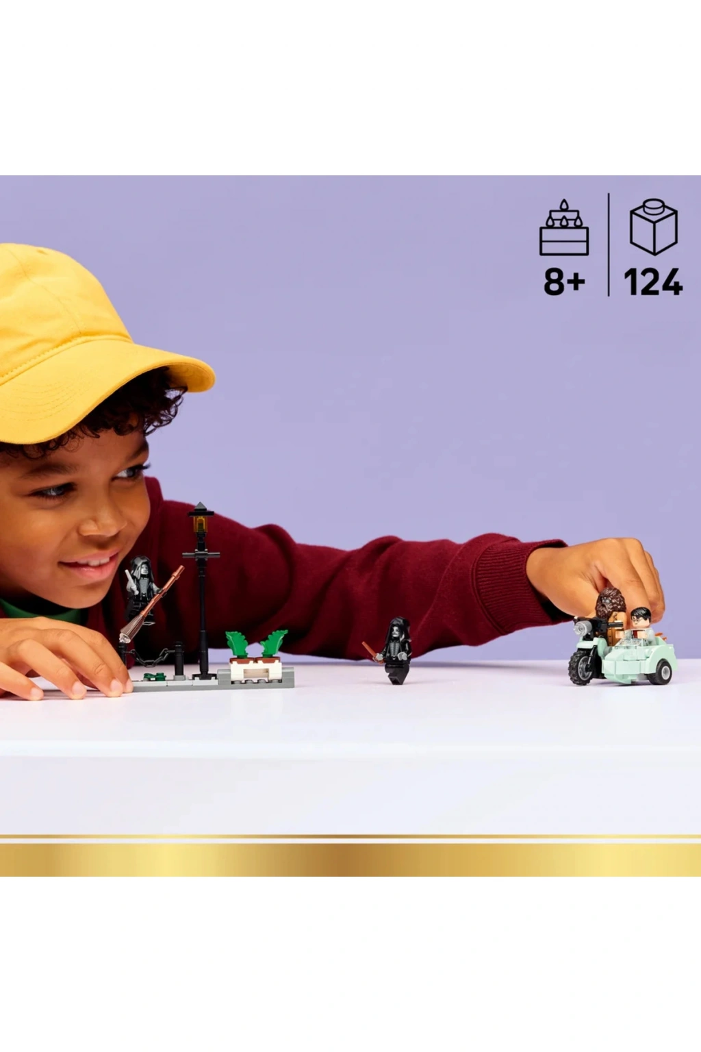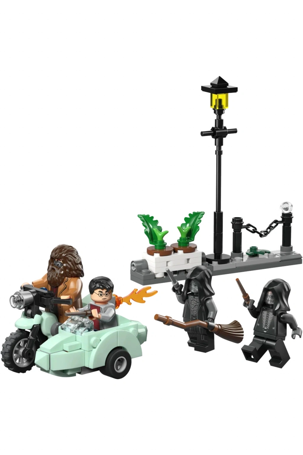 Çocuklara yönelik bu LEGO Harry Potter oyuncağı (76459) ile Harry Potter ve Ölüm Yadigarları’nda Hagrid ve Harry’nin Privet Drive’dan kaçışını yeniden yaşayın. Büyülü oyuncak yapım seti, 8 yaş ve üzeri erkek ve kız çocuklarla hayranlar için eğlenceli küçük bir doğum günü hediyesidir. Hagrid’in uçan motosikletinin ilk minifigür ölçekli LEGO modeli, 4 LEGO Harry Potter minifigürü ve Privet Drive mini model sahnesiyle yaratıcı oyunları teşvik eder. Rubeus Hagrid minifigürünü oyuncak motosiklete, Harry Potter’ı ise yan sepete yerleştirin. Kahramanların cesur kaçışı sırasında devrilecek şekilde tasarlanmış bir sokak lambası ve saksıların olduğu Privet Drive sahnesine 2 Ölüm Yiyen minifigürünü yerleştirin. Çocuklar, LEGO Builder uygulamasını kullanarak modeli öz güvenle inşa edebilir. Kolay anlaşılır dijital talimatlarla modeli yakınlaştırabilir, 3 boyutlu döndürebilir ve ilerlemelerini takip edebilirler. Sette 124 parça bulunur.