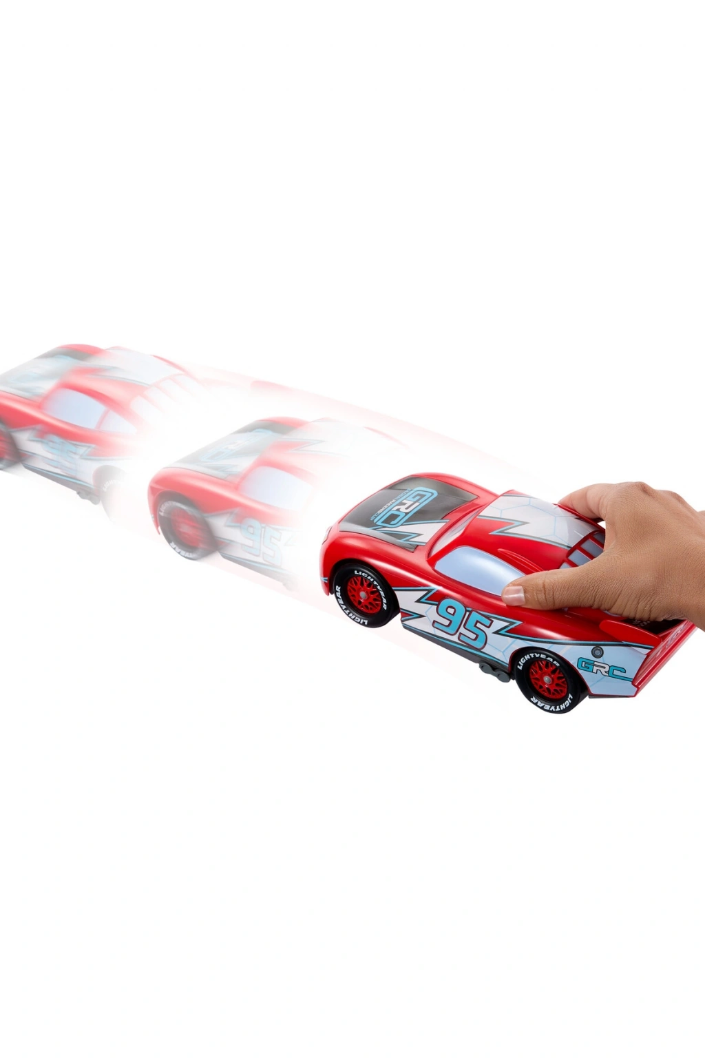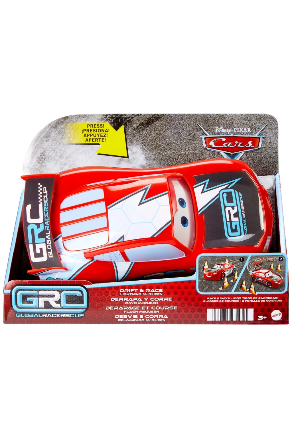 With two modes to bring the racing action to life, this Disney and Pixar's Cars Lightning McQueen toy car is ready to drift and race into playtime! The Global Racers cup brings the best of the best together in Radiator Springs for an international race. Drift & Race Lightning McQueen is ready with both a drift mode and a race mode -- kids choose with the switch on the bottom of the toy, then pull the car back and watch him go! Four paper cones are included for a straight shot race or drifting obstacles for stunting fun! Press the button on the top of Lightning McQueen's head to bring the character even further to life with a racing eye expression. Kids and fans age 3 years and older will delight in racing storytelling action. Colors and decorations may vary.