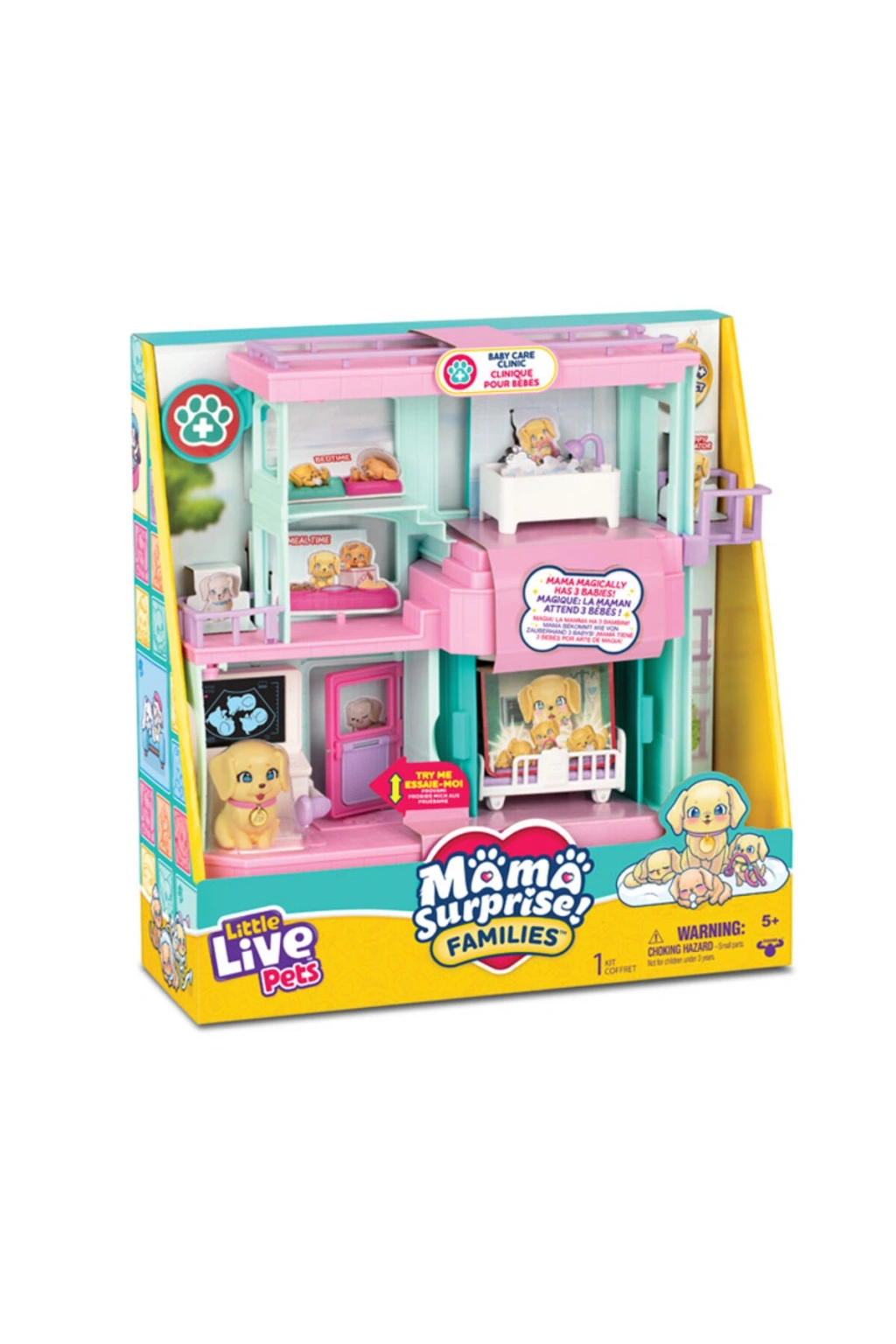 Little Live Pets MSF serisinin Pati Bakım Evi, mini yavrular için interaktif bir oyun alanı sunuyor.; Çift taraflı yapısıyla tasarlanan klinik oyun setinde Anne X-RAY ile taranarak kaç yavru beklediği öğreniliyor.; Anne hastane yatağına yerleştirilip perde kapatılıyor ve açıldığında yeni bir yavru ortaya çıkıyor.; Bu adım üç kez tekrarlandığında tüm yavrularla tanışılıyor.; Küvet içinde yıkanan yavruların doğum lekeleri ortaya çıkıyor.; Bu sete özel pozlara ve karakterlere sahip Retriever ailesi ve 5 farklı aksesuarla oyun çeşitleniyor.