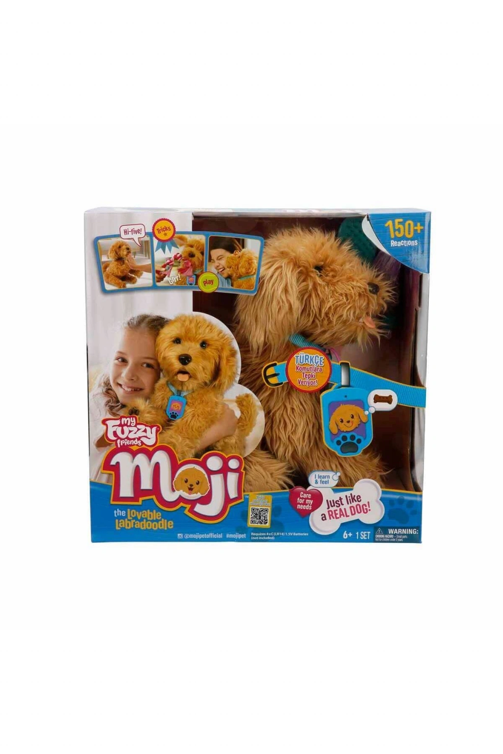 My Fuzzie Friends Ürün Özellikleri My Fuzzie Friends ailesinin Sevimli Labrador üyesi Moji ile tanışma zamanı! Moji, bakım tasması, oyuncağı, mama kabı ve tarağıyla geliyor. Ona verilen komutları dinliyor ve yerine getiriyor. 7 farklı isim seçeneği olan Moji, dijital resimli tasması aracılığıyla çocuklara ne istediğini söylüyor. Kemik, su, tuvalet veya sevilmek istiyor olabilir. Üstelik sesli tepkilerin tümü Türkçe!; Komutları algılaması için önce “Moji” diyerek seslenmek gerekiyor. Kafasını yana yatırarak dinlediğini belli ediyor ve aynı anda tasmasında da moji beliriyor. Daha sonra yapması istenen komut söyleniyor. Bunun için sessiz bir ortam gerekiyor. Eğer ortam Moji’nin anlamasını engelleyecek kadar gürültülüyse komutlar bakım kartlarından seçilip tasmaya okutturularak da yapılabiliyor. Bazen de Moji’nin ne istediği tasmasında beliriyor. Mama, su veya banyo isteyebiliyor. Bakım kartlarını okutarak istekleri gerçekleştirilebiliyor.; Ürün Ölçüsü: 43,2x43,2x19,5 cm; Pil Bilgisi: 4xC (LR14) (DAHİL DEĞİLDİR); Yaş: 6+;