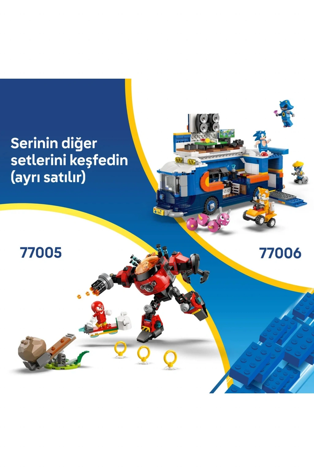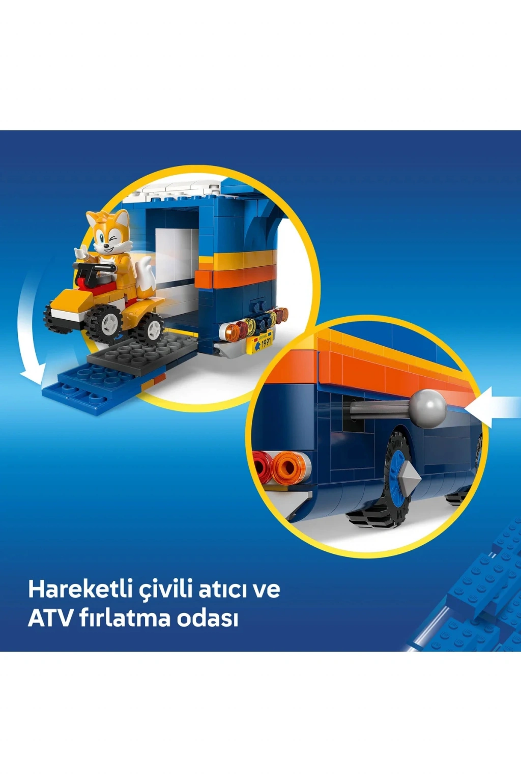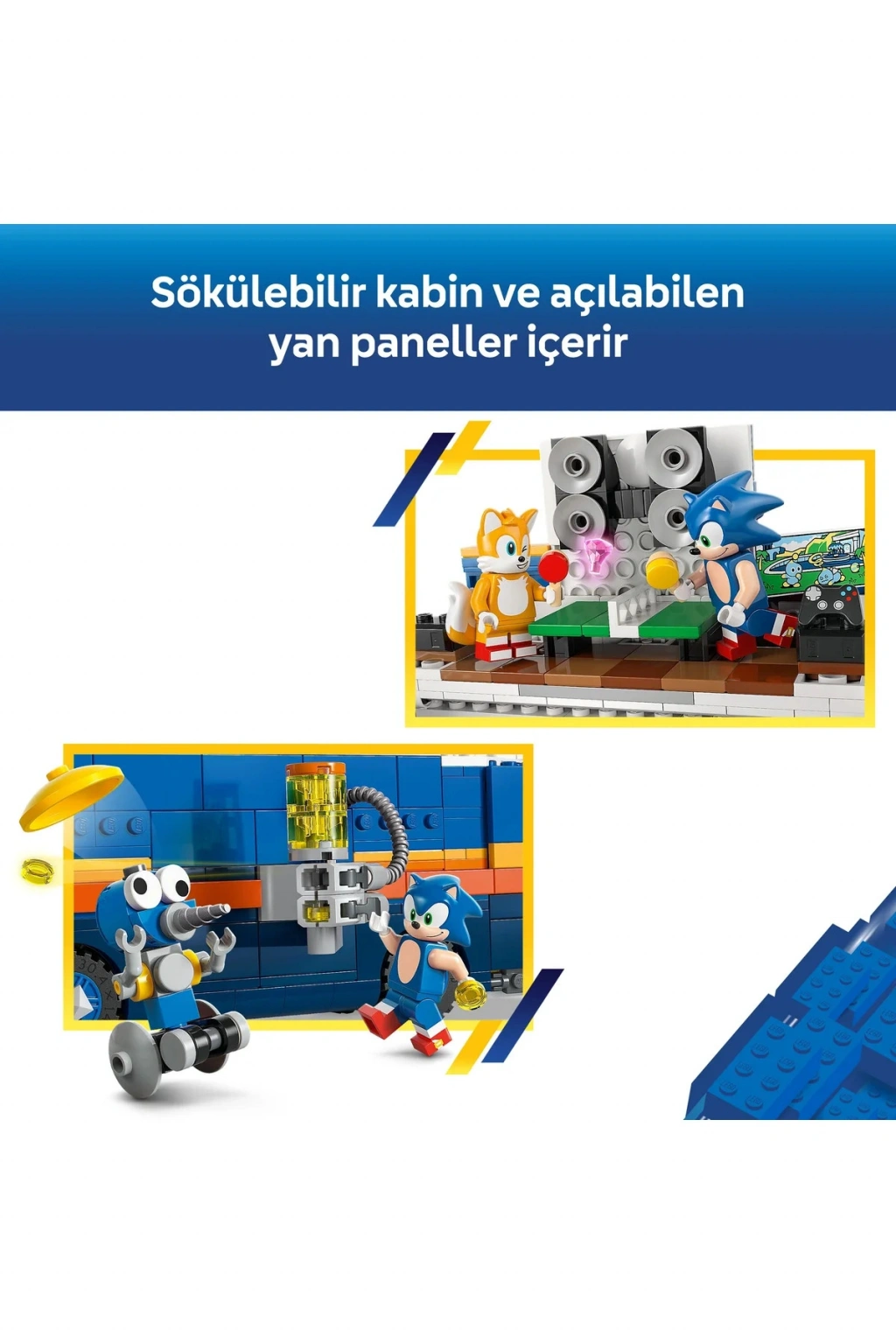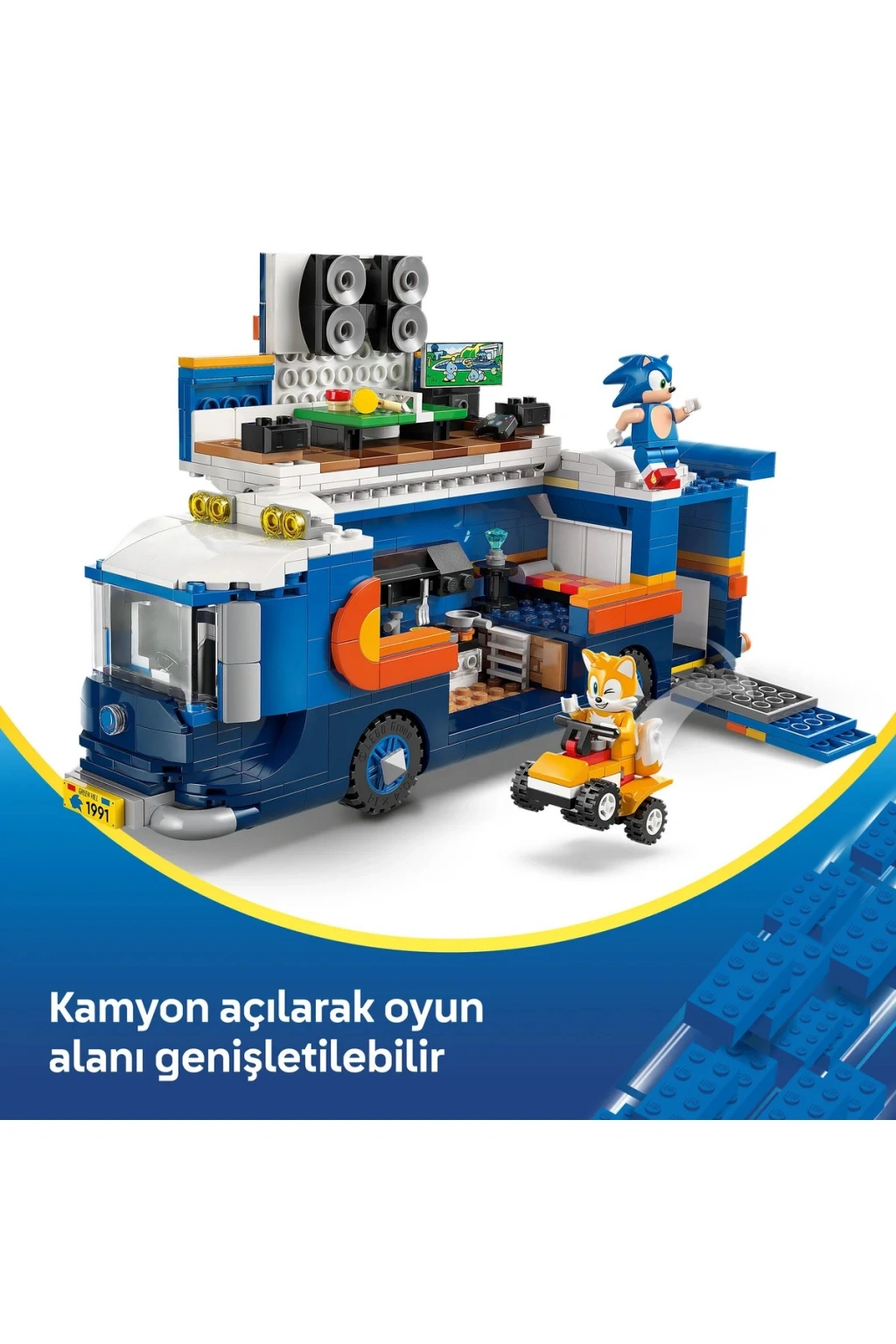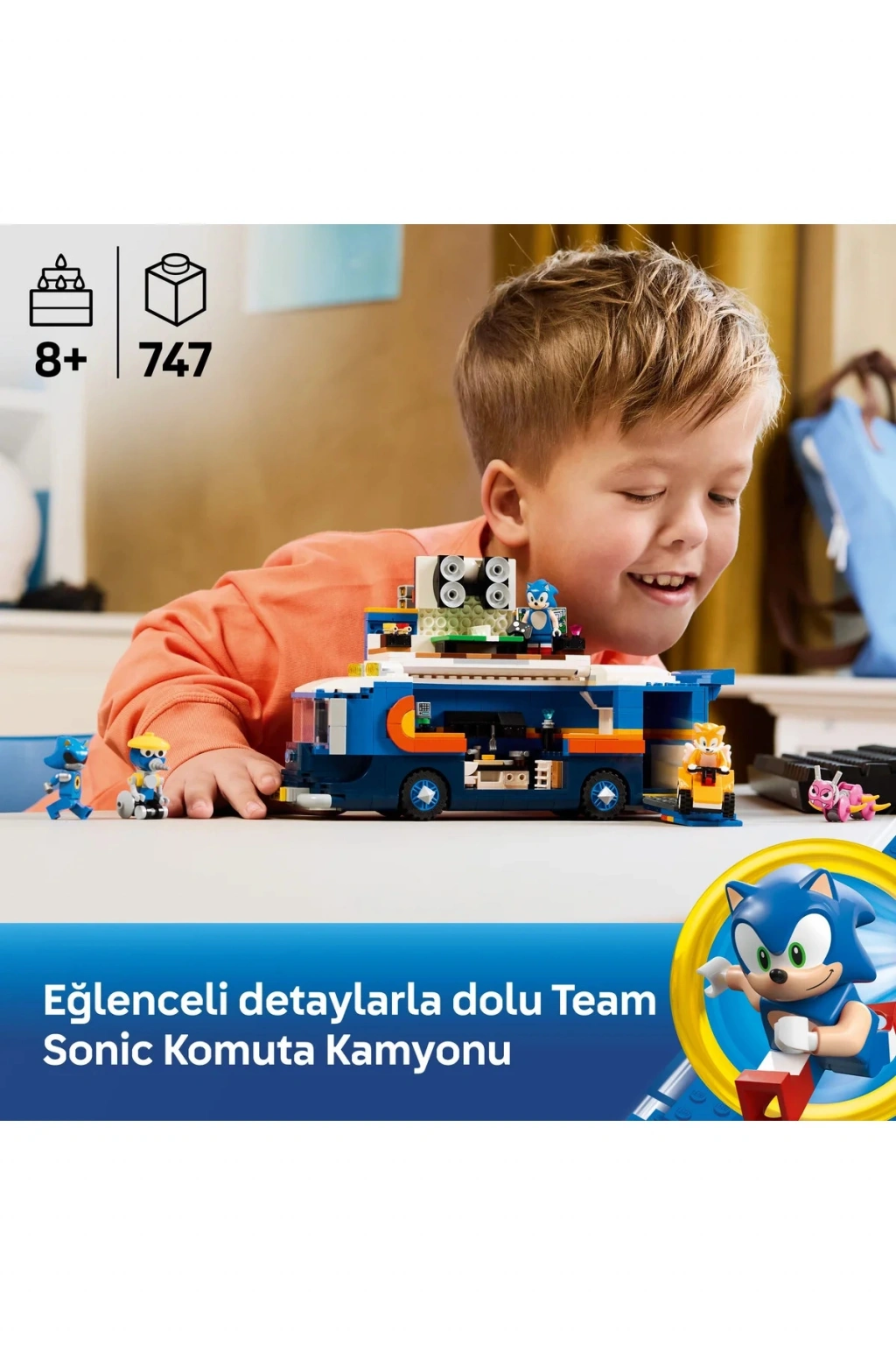 Komuta oyuncak kamyonuyla gelen bu yaratıcı yapım seti, aksiyonu ve inşa oyuncaklarını seven 8 yaş ve üzeri erkek çocuklar ve kız çocuklar için tasarlanmıştır. Ayrıntılı oyuncak kamyon modeli; çıkarılabilir sürücü kabini, yan paneli açılan oyun alanı, mermi atıcısı ve ATV fırlatma fonksiyonuyla interaktif bir inşa deneyimi sunar. Çocuklar bu detaylarla sahneler kurabilir, iyi ve kötü karakterler arasında seçim yaparak özgün hikâyeler oluşturabilir. Araç üzerindeki çoklu oyun özellikleri sayesinde rol yapma oyunları daha sürükleyici ve eğlenceli hale gelir.;Modelde yer alan 5 oyuncak figür (hızlı kahramanlar ve rakipleri) ile çocuklar ister rekabetçi senaryolar ister iş birliği odaklı hikâyeler yazabilir. Bu çok yönlü oyuncak tır yapım seti, figürlerle oynanabilecek sahneler yaratmak isteyen çocuklara ilham verirken; karakterler arası geçişle farklı taraflardan oyuna katılmalarını da sağlar. Oyuncak kamyonun fonksiyonel bölümleri, parçalarla inşa edilen oyun mekaniğine dinamizm katar. ;Serideki diğer yapım setleriyle birleştirilebilen bu oyuncak tır, oyun dünyasını seven çocuklara hediye etmek için harika bir seçimdir. Ayrıca LEGO® Builder uygulaması sayesinde çocuklar modelleri üç boyutlu olarak inceleyebilir, inşa sürecini takip edebilir ve setlerini dijital olarak kaydedebilir. Uygulama, adım adım rehberlik sunarak inşa deneyimini daha sezgisel ve ulaşılabilir kılar. Toplamda 747 parça içerir. Bu Sonic oyuncak çocuklar için mükemmel bir hediyedir.