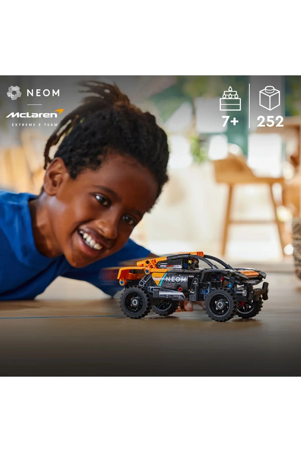 Arazi yarışlarına hazır mısınız? NEOM McLaren Extreme E Race Car, dünyanın en uzak yerlerinde yarışmak için tasarlandı. Şimdi bu inanılmaz arazi arabasının LEGO® Technic modelini inşa edebilir ve neler yapabileceğini görebilirsiniz. Büyük lastiklerini inceleyin ve arabayı hızla sürmek için çek-bırak fonksiyonunu kullanın. Sonra tıpkı gerçek bir Extreme E sürücüsü gibi podyumda kutlama yaptığınızı hayal edin!