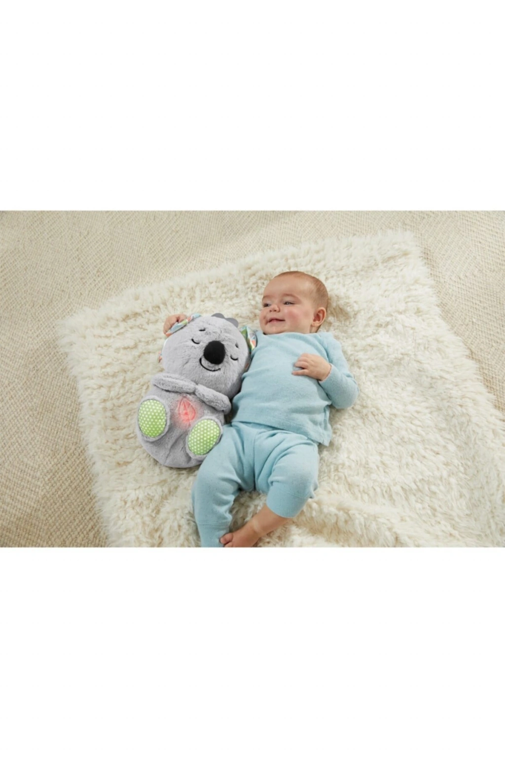 Fisher Price Uyku Arkadaşı Koala GRT59 Bebeğiniz, Fisher-Price Uyku Arkadaşı Koala'yı yanından ayırmayacak Bu müzikli pelüş oyuncağın ışıklı yumuşak karnı nefes alıp verme eylemini taklit etmek için ritmik ve rahatlatıcı şekilde hareket eder.; Sakinleştirici özelliğini, rengarenk ışıkları, özelleştirilebilir zamanlayıcıları, müziği veya doğa seslerini kullanarak bebeğinizin ihtiyaçlarına göre ayarlayın.; Makinede yıkanabilen bu pelüş uyku arkadaşında, tam da minik ellerin keşfedebileceği farklı dokular bulunur.; Rahatlatıcı ses, ışık ve hareketler ile müzikli, özelleştirilebilir pelüş oyuncak Koalanın ritmik nefes alma hareketleriyle aşağı yukarı doğru hareket eden karnı, bebeğinizin sakinleşip rahatlamasına yardımcı olur.; 3 ışık rengi seçeneği, sakin müzik veya sesleri ve ses kontrol özelliği bulunan rahatlatıcı oyuncağı 15, 30 veya 45 dakika olarak ayarlayın.; Elektronik parçalar çıkarıldığında makinede yıkanabilen, parlak kulakları ve işlemeli ayrıntıları bulunan yumuşacık pelüş oyuncak Doğumdan itibaren tüm bebekler için
